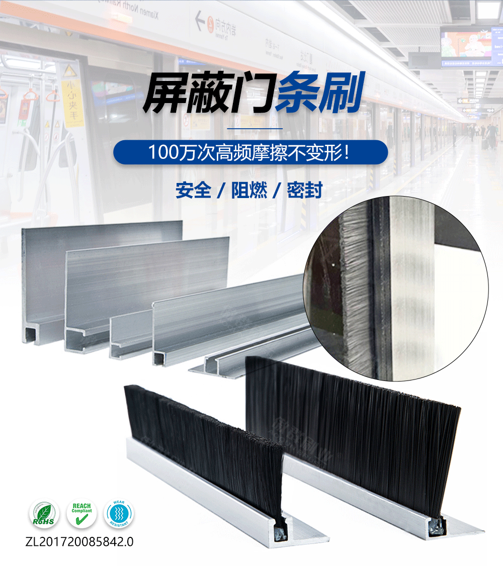 • 功能/用途:密封毛刷廣泛適用于地鐵、動車、高鐵等軌道交通的月臺、屏蔽門及快速卷簾門、推拉門、推積門、平移門、旋轉