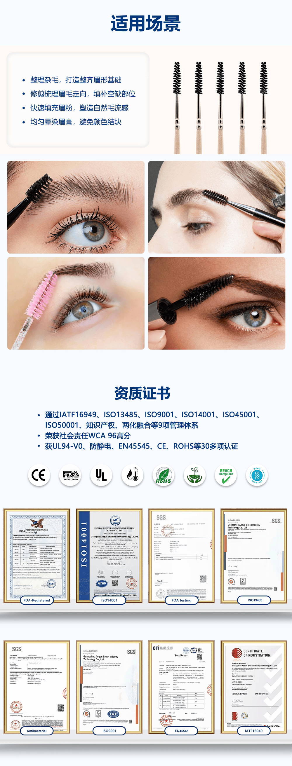 - 應用范圍:整理雜毛,打造整齊眉形基礎。修剪梳理眉毛走向,填補空缺部位快速填充眉粉,塑造自然毛流感。均勻星染眉膏