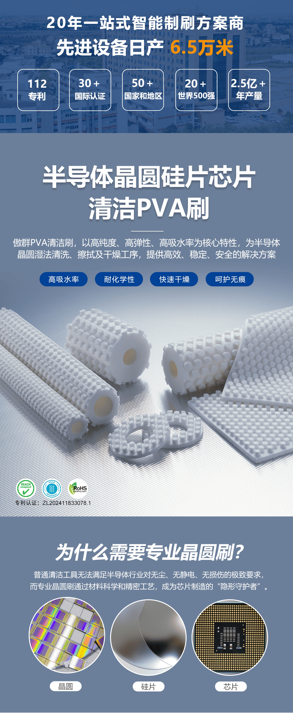 - 產品名稱:晶圓硅片芯片清潔PVA刷